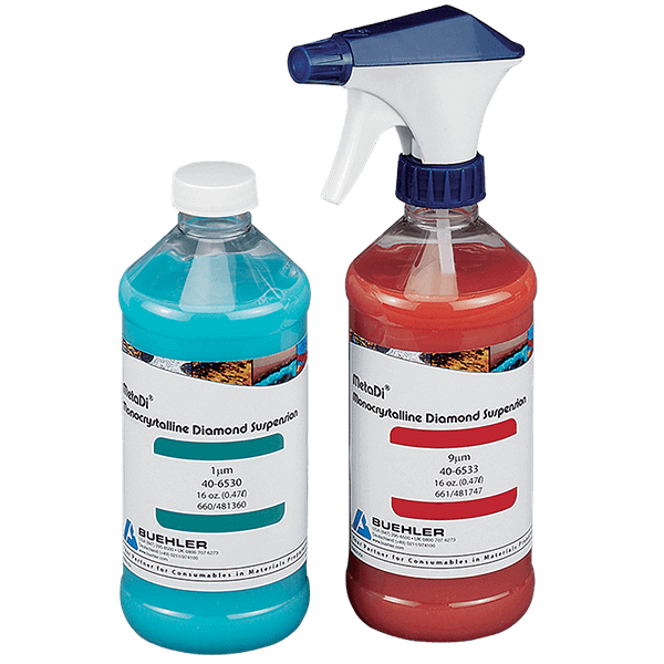 •   MetaDi鉆石懸浮液和漿料是的單晶和多晶金剛石拋光產品,可提供可重復的性能并提供良好的樣品質量。嚴格控制Buehler的MetaDi鉆石懸浮拋光劑和糊劑產品,以防止粒徑或濃度出現任何偏差。 這樣可尋求每個樣品的拋光結果均具有可重現性,并具有的表面光潔度?;谖⒚壮叽绲念伾幋a的鉆石懸浮液和糊劑有助于防止拋光表面上的交叉污染。由于對水的性或鉆石的嵌入,某些材料與傳統的水基懸浮液不兼容。 與水的材料一起使用時,油基MetaDi單晶金剛石懸浮液以及MetaDi金剛石漿料提供了多種選擇。標樂金剛石懸浮液及研磨膏