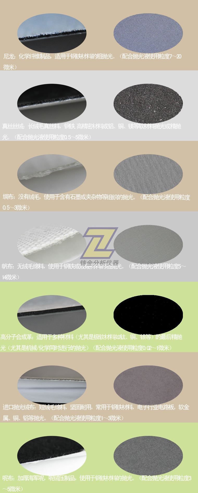 絲綢布:沒有絨毛,使用于含有石墨或夾雜物等組織的拋光;