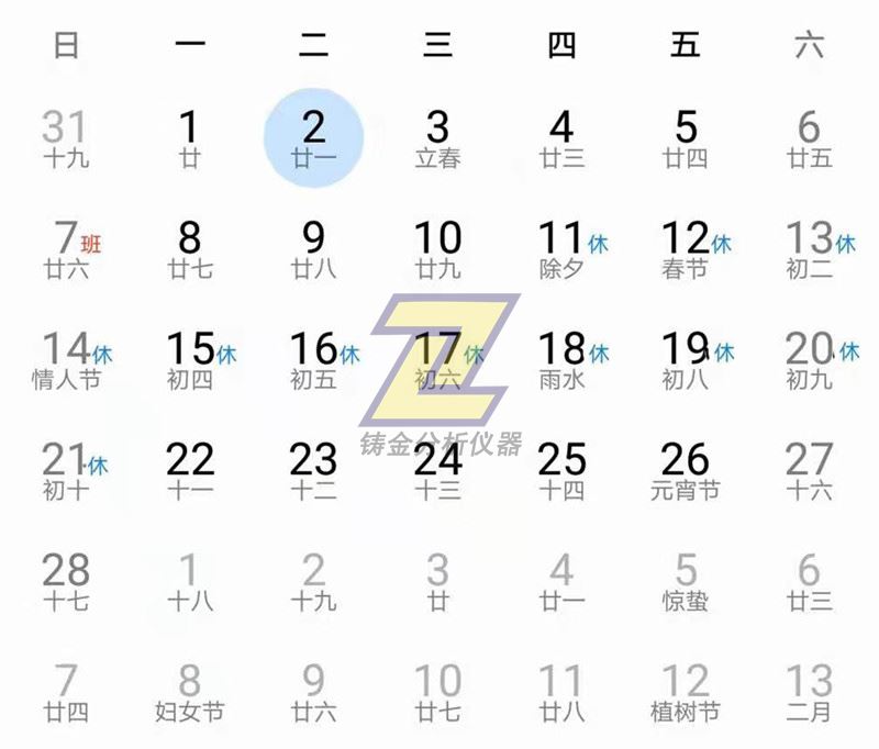 上海鑄金分析儀器有限公司 2021年2月2日