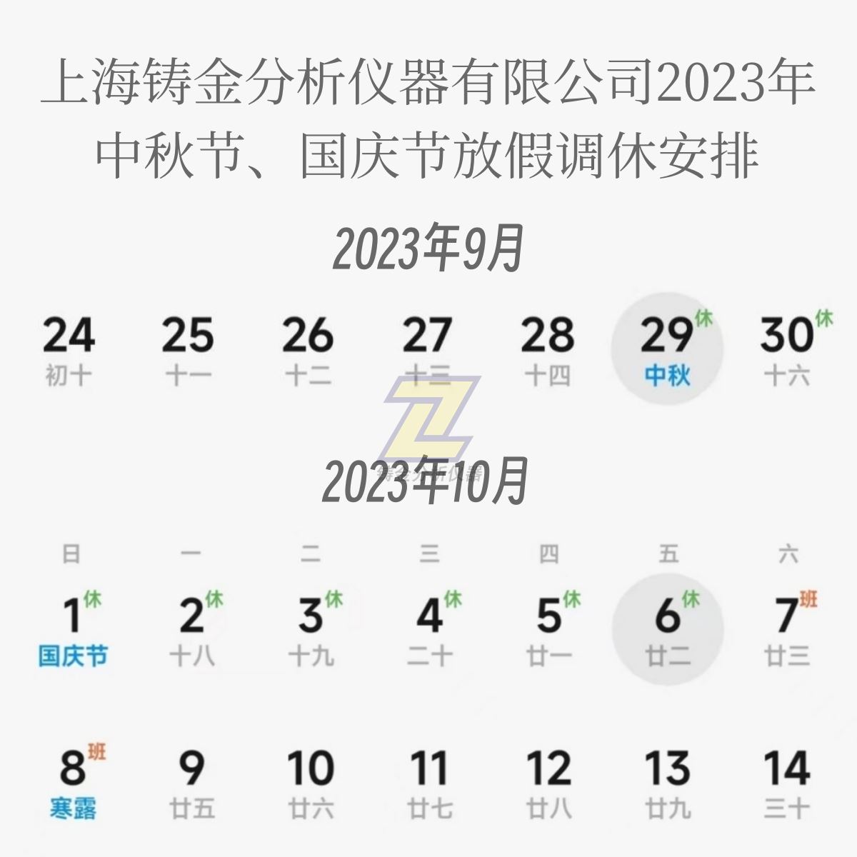 根據(jù)政府相關(guān)政策結(jié)合本公司實際情況,上海鑄金分析儀器有限公司2023年中秋節(jié)及國慶節(jié)放假調(diào)休安排如下: