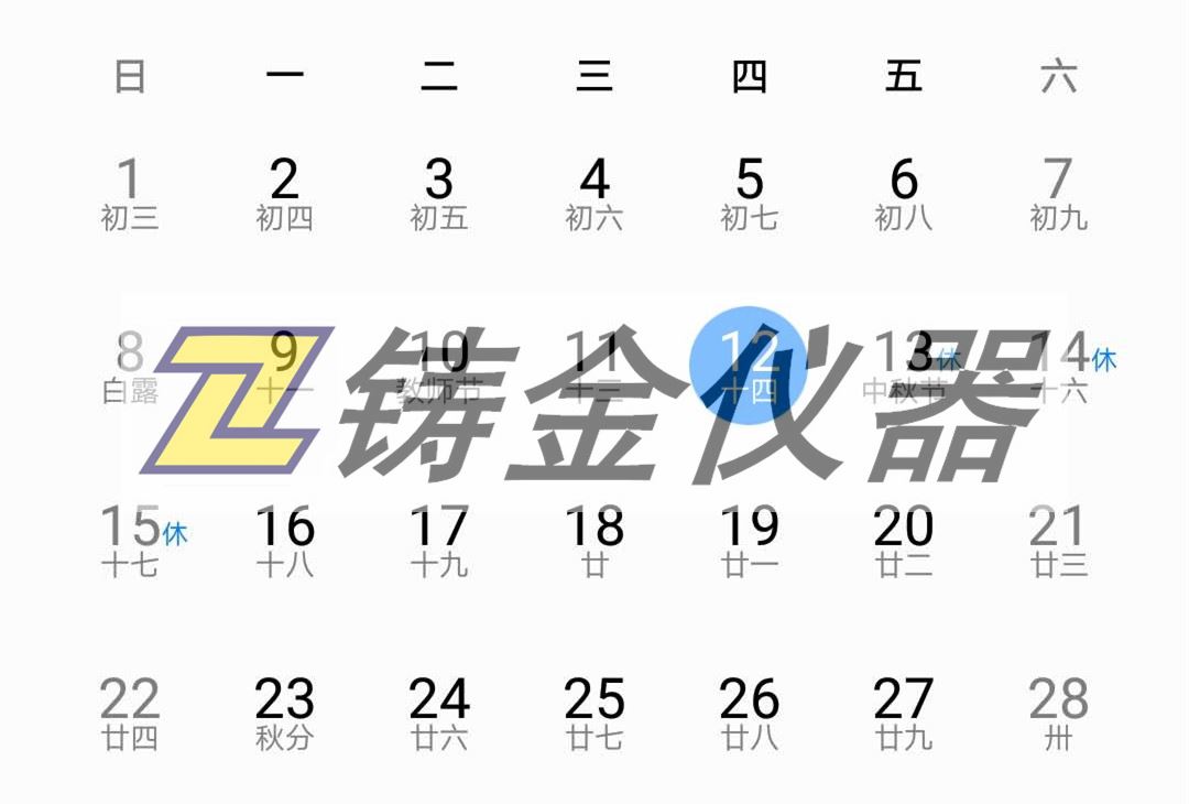 上海鑄金分析儀器有限公司中秋節(jié)放假通知