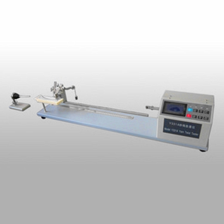 該儀器用于測(cè)定棉、毛、麻、化纖等紗線的捻度,捻度不均率、股線的捻度。Y331紗線捻度儀結(jié)構(gòu)原理:本儀器由控制箱(數(shù)字顯示)、張力機(jī)構(gòu)、插紗架等部件組成。主機(jī)解捻夾頭的轉(zhuǎn)動(dòng)方向、轉(zhuǎn)速、啟動(dòng)和停止由控制箱控制,捻回?cái)?shù)測(cè)試的通過光電轉(zhuǎn)換由控制顯示箱顯示捻回?cái)?shù)字。儀器的隔距可調(diào),試驗(yàn)時(shí)張力由垂直指針式杠桿施加張力,零位自停采用光電傳感器。Y331紗線捻度儀主要技術(shù)參數(shù)1、解捻轉(zhuǎn)速:1000r/min,800r/min,慢速(可調(diào))2、z*大試樣測(cè)試長(zhǎng)度:500mm3、捻回?cái)?shù)指示:0.1~9999.94