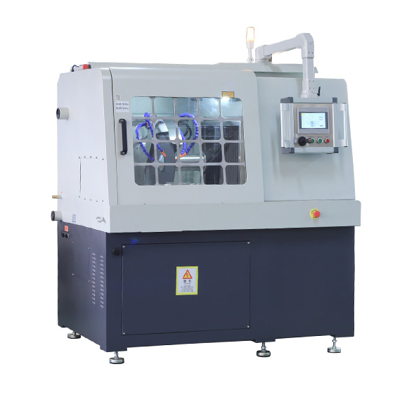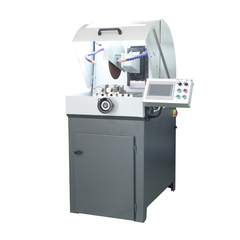 1.本機采用全封閉結構,密封效果好;2.電機等電器均和切割室分開,設備更安全,電器壽命更長;3.右側手動拉桿,切割片向下輕松進行砍式切割;4.前端手輪,可以控制工作臺前后移動,進給穩定,后端電機,可以自動控制工作臺前后移動進給;5.切割片在不同的高度、工件不同的前后位置可分別固定,不同位置的組合,可完成大尺寸的切割;6.設備上部被可開合的防護罩蓋住,防護罩上超大的觀察窗,配合高亮度照明系統使用操作者隨時掌握切割過程;7.本機采用快速夾緊裝置,夾持物件更為快速準確;8.帶凹槽的工作臺配合快速夾緊裝置,滿足各