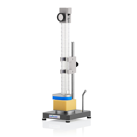 除了橡膠材質的回彈測試,BR500是專門針對泡棉、聚氨酯等材料彈力的測試器。其原理符合DIN EN ISO 8307 和ASTM D3574。測試經由一顆16 mm的磁性鋼球從規定的500mm高度自由落體到樣品上,儀器會透過三道光幕來判斷球體回彈高度,反應樣品的彈性。本儀器的電子裝置能夠顯示測量數值并計算出平均值的百分比。簡易的產品使用和設定讓使用者能快速上手。橡膠落球回彈測試儀|聚合物泡沫落球回彈試驗機參考特點:▲球體不受干擾聚合物泡沫材料的彈性可以通過測量球在自由落體和撞擊試樣后的回彈高度來分析。測量