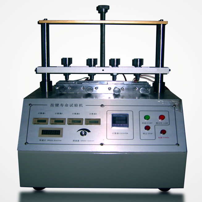 產(chǎn)品概述:●本機使用于 水龍頭,開關(guān),鍵盤,電話等產(chǎn)品按鍵電腦、手機、CD/MP3、計算器、記事本、電器/汽車遙控器等按鍵做壽命測試。尤其適用于手機按鍵作疲勞測試。●按鍵壽命試驗機是一種用來測試按鍵在工作情形時經(jīng)過反復(fù)的按下一定天數(shù)后之受損情況,以此來判斷按鍵的使用壽命。以幫助客戶更好地了解自己的產(chǎn)品,不斷提高產(chǎn)品質(zhì)量,本設(shè)備分別有4個小計數(shù)器,分別可測試記錄產(chǎn)品當(dāng)前測試值.技術(shù)參數(shù):1.總次數(shù)范圍:0~99999999次(可設(shè)定)2.試驗速度:3~60rpm/min數(shù)字顯示可調(diào)3.工位:4工位/8工位同
