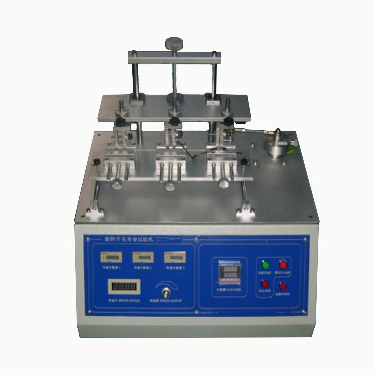 旋轉(zhuǎn)開關(guān)壽命試驗機產(chǎn)品概述:該設(shè)備依據(jù)GB16915.1-2003、GB15092,1-2003,IEC60669-1,IEC61058-1等標(biāo)準(zhǔn)的相應(yīng)條款而設(shè)計,用于檢測家用/工業(yè)和類似用途開關(guān)產(chǎn)品、電位器、旋轉(zhuǎn)檔位開關(guān)的機械壽命試驗。可以模擬實際工作中一定開關(guān)次數(shù)后,產(chǎn)品的質(zhì)量可靠性。從而提高產(chǎn)品質(zhì)量,為產(chǎn)品研發(fā)提供可靠依據(jù)。 旋轉(zhuǎn)開關(guān)壽命試驗機技術(shù)參數(shù):1.三工位,可同時進行測試,工位數(shù)量可以定做。2.旋轉(zhuǎn)角度可調(diào)0-360度,可根據(jù)要求定做角度。3.速度(數(shù)顯)10-60次/min可調(diào),可以按要求