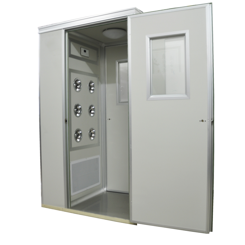 風淋室是超凈化工作廠房的重要配置設備,專用于作業人員凈化工作環境前的人身風淋,以清除人員表面的塵埃,同時也起到與外界的氣閘作用,以防止未被凈化的空氣進入凈化區域,能確保凈化環境的潔凈度,它是創造潔凈空氣環境的一種具有良好效果的專用設施。FLB系列風淋室工作原理 接通電源后(按下一個按鈕通電,再按一下即斷電),風淋室進入工作狀態,工作人員開啟前門即啟動低噪音風機進行風淋狀態,風淋室內空氣經預過濾器壓入靜壓箱,經過過濾器壓出,通過二級過濾器裝置使被凈化后的空氣從箱體兩側的噴口高速噴出,吹落物體表面上的塵