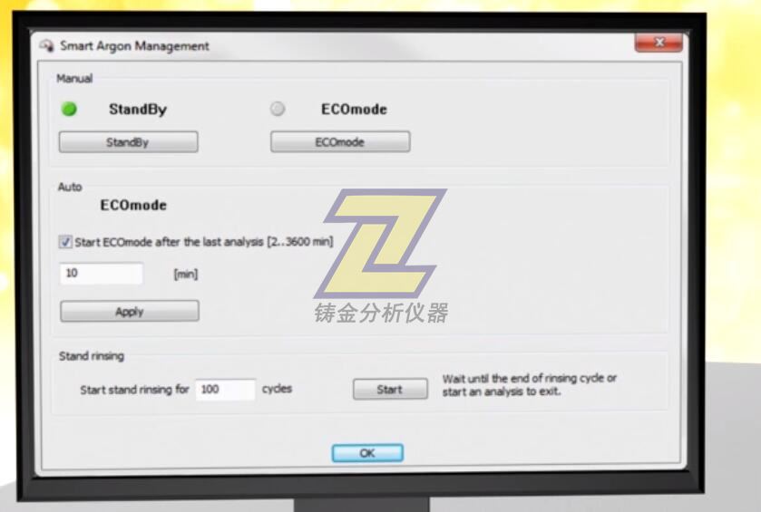 ? 超級ECOmode停止火花臺和CCD光學組件內的氬氣流(即0升/小時)。 儀器在5分鐘內恢復操作