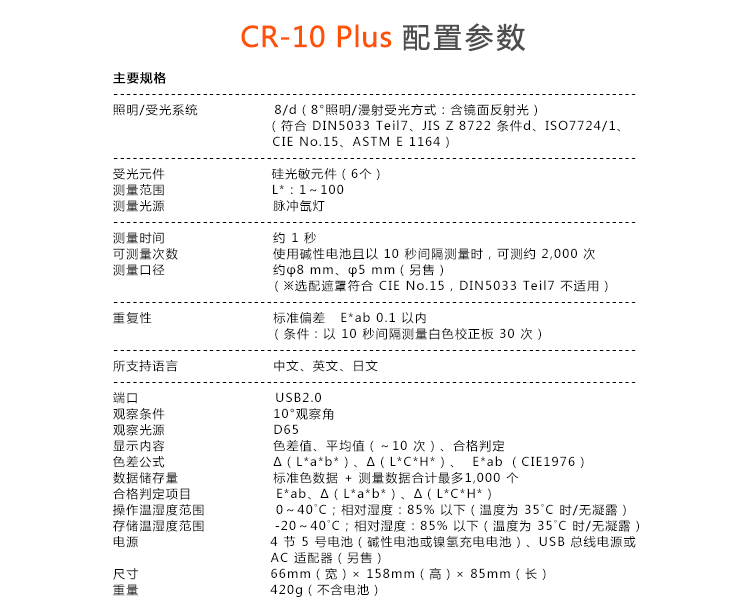 經(jīng)濟(jì)型便攜色差計(jì)CR-10 Plus作為CR-10的升級(jí)款,在原有輕便靈活、便于攜帶的基礎(chǔ)上,更實(shí)現(xiàn)了與電腦的連接,可進(jìn)一步擴(kuò)展數(shù)據(jù)管理的范圍, 滿足了質(zhì)檢人員頻繁快速的現(xiàn)場(chǎng)測(cè)量并給出即時(shí)結(jié)果,幫助企業(yè)實(shí)現(xiàn)高效的供應(yīng)商與產(chǎn)品的質(zhì)量控制。